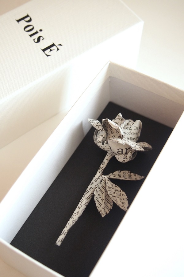 ”PLASTIC POEM” Pois É ポイズ・エ コサージュ オートクチュールの技法を用いたバラのコサージュ。 "Plastic Poem"=造形詩 眺め、身につける、 視覚と形の、音のない「詩」の世界。 BOXに入れてお渡しします。 ”PLASTIC POEM” 素材:COTTON / PAPER サイズ:約9cm